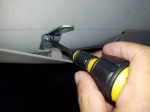 ●リアシート上の手すり用のネジ穴2ヶ所と、耐荷重を上げるために荷室ピラー内部のメクラ穴を利用してサイドバーを取り付けます。