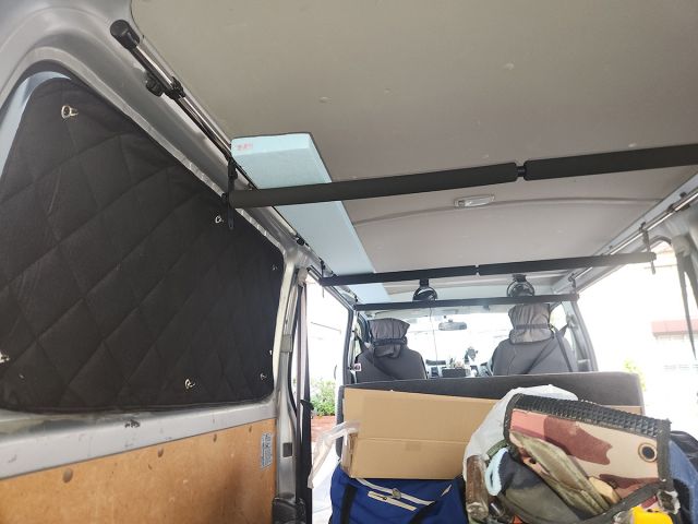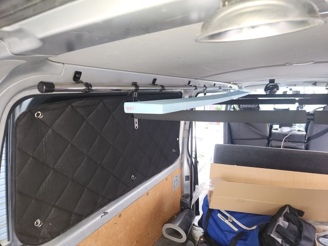 ●お仕事にもアウトドアにも、ここに市販のクリップミニ扇風機やライト、ランタン、メッシュネットなどを取り付けることもできます。車内泊には必須、マストアイテムです。