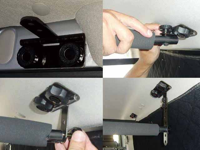 ●前バー・後ろバーともに車壁にあるねじ穴を使って取り付けます。