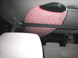 ポルテ用車内キャリア取り付け手順 このキットは車壁に穴あけ加工が必要になります。電動ドリルやリーマーなどの穴あけのできる工具をご用意ください。 ポルテ用のキットを使います。前バーの片側は助手席上の手すりに、そしてもう片側は運転席の上のピラー(柱)に取り付けます。右側のピラーカバーが外せますので、その中のルーフライニングを留めている白いボタンを外します。そして電動ドリルやリーマーを使って穴を10.2ミリに大きくします。ターンナットを穴に入れ専用金具を固定し、バーをつけたら出来上がりです。 |